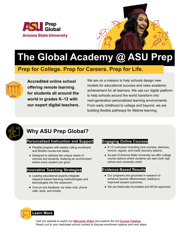 ASU‑accredited courses taught by ASU Prep Global Academy teachers